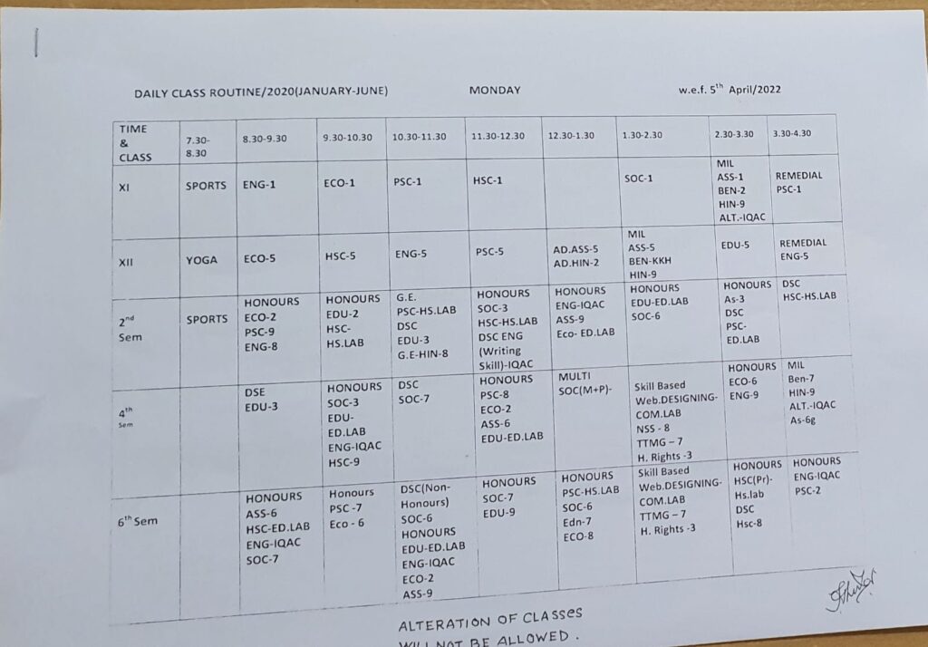 Daily Class Routine-2022(January-June) (All Departments) w.e.f.-5th April-/2022
